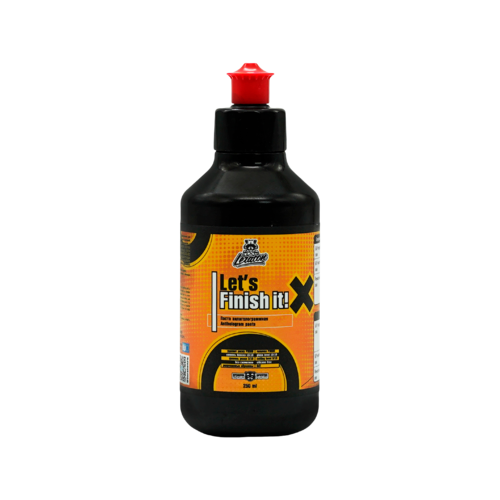 Finish It - это профессиональная низкоабразивная антиголограммная полировальная паста. Предназначена для удаления следов шлифовки градацией ниже P3000, мелкой паутинки и голограмм после абразивной полировки. Придаёт лаку экстремальный уровень блеска, восстанавливает глянец поверхности и насыщенность цвета. Подходит для любых типов машинок, но для более эффективного результата рекомендуем использовать с машинками двойного действия (эксцентрик).Для удаления мелких дефектов и паутинок рекомендуется использовать мягкие поролоновые круги (серии кругов DAP, ROP). При антиголограммных и доводочных работах рекомендуется использовать экстрамягкие поролоновые круги (серии кругов TDAF, DAF, ROF). Не содержит в составе силиконы и летучие соединения. Паста разработана на основе саморазрушающихся абразивов (DAT), что позволяет добиться максимально эффективного и чистого финишного результата.