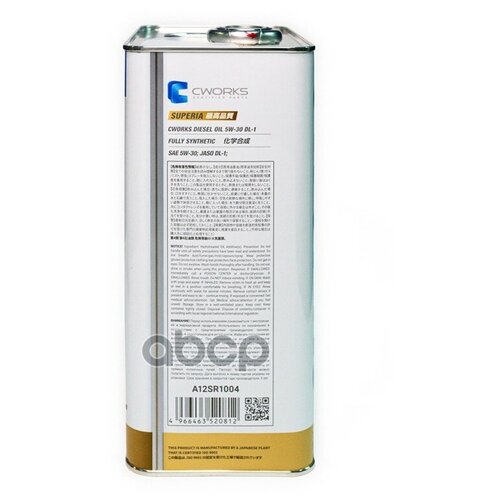 A12SR1004 CWORKS Масло моторное SUPERIA CWORKS DIESEL OIL 5w30 DL-1 (4л)
