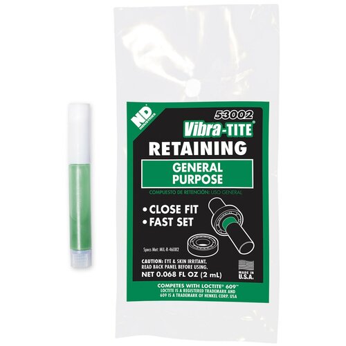 Вал-втулочный фиксатор Vibra-Tite 530 используют на сборочных конвейерных производствах для герметизации зазоров до 0.005" при постоянной рабочей температуре до +150ºС.Благодаря смазывающим свойствам продукт легко наносится и облегчает монтаж двигателей, шестерней, звездочек и шкивов. Фиксатор подходит для крепления в корпусах или на валах подшипников, втулок, сальников, заглушек водяных помп.Низко-вязкостный состав упрощает вклейку шпонок и обеспечивает блокировку шпоночных пазов, увеличивает прочность на сдвиг цилиндрических соединений и создает прочный единый узел, предотвращая утечки и образование коррозии металла.
