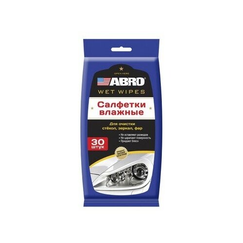 ABRO Салфетки влажные для стекла, зеркал, фар (30 шт.) "ABRO". .