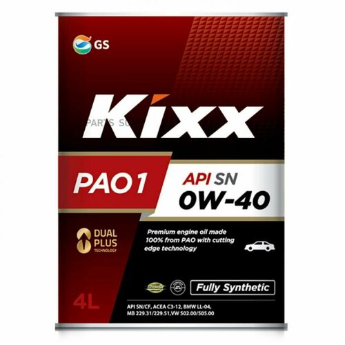 KIXX L208444TE1 Масло моторное Kixx PAO 1 0w-40 API SN, ACEA A3/B4/C3 4л L208444TE1