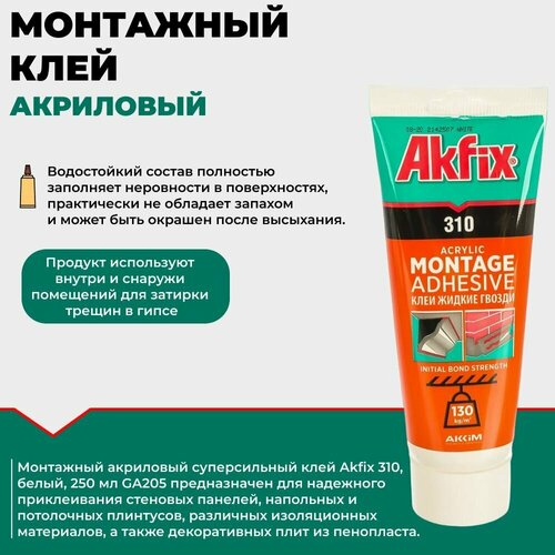 Akfix Монтажный акриловый суперсильный клей Akfix 310, белый, 250 мл GA205
