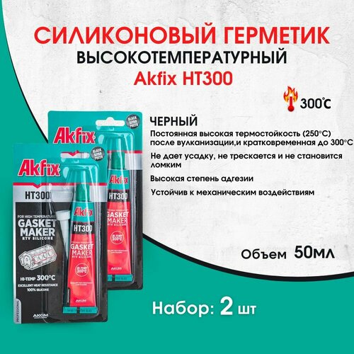 Герметик силиконовый Akfix Нт300, термостойкий, черный, 50 г Akfix 6957221 .