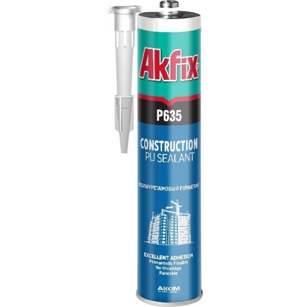 Полиуретановый строительный герметик Akfix P635 35 Шор, серый, 310 мл AA116 - однокомпонентный полиуретановый герметик, обладающий высокой адгезией ко всем типичным конструкционным материалам, материалам на основе цемента, кирпичу, керамике, стеклу, дереву, оцинкованному и окрашенному листовому металлу и различным пластмассам.