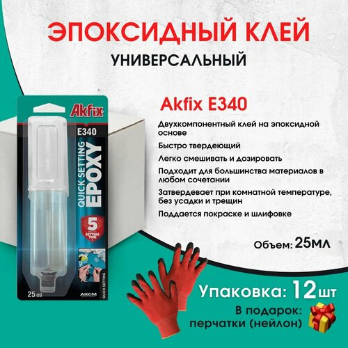Быстротвердеющий эпоксидный клей Akfix E340, 12 штук