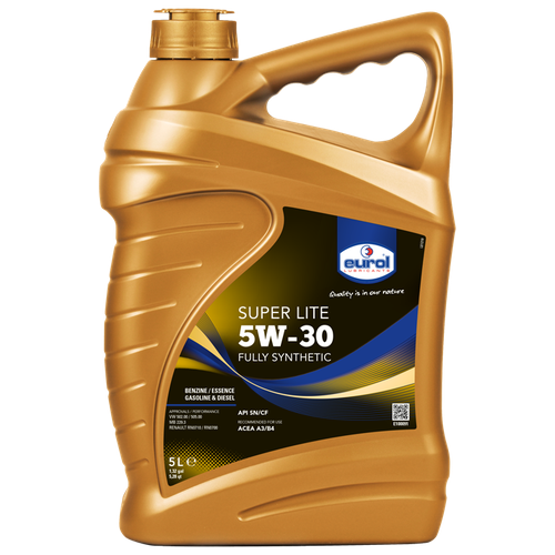 Полностью синтетическое моторное масло Eurol Super Lite 5W-30 ля бензиновых и дизельных двигателей легковых автомобилей и легкого коммерческого транспорта. Это масло может использоваться в двигателях с турбонаддувом и без, оборудованных катализаторами, а также в моторах с прямым впрыском топлива. Обеспечивает стабильную масляную пленку при холодном запуске и сохраняет ее при высоких температурах и тяжелых условиях эксплуатации. Обеспечивает отличную защиту от износа, коррозии и окисления, специальные присадки сохраняют двигатель в чистоте и предотвращают образование отложений и нагара. Обладает топливной экономичностью и может смешиваться с синтетическими и минеральными моторными маслами.ДопускиAPI SN/CFРекомендацииACEA A3/B4VW 502.00MB 229.3Renault RN0710Renault RN0700VW 505.00