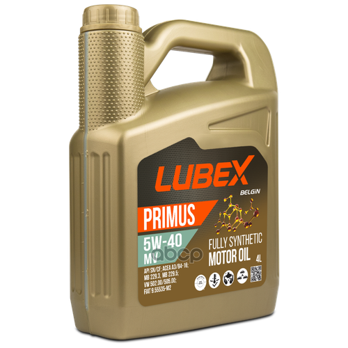 L03413250404 LUBEX Масло моторное синтетическое PRIMUS MV 5W-40 CF/SN A3/B4 (4л)