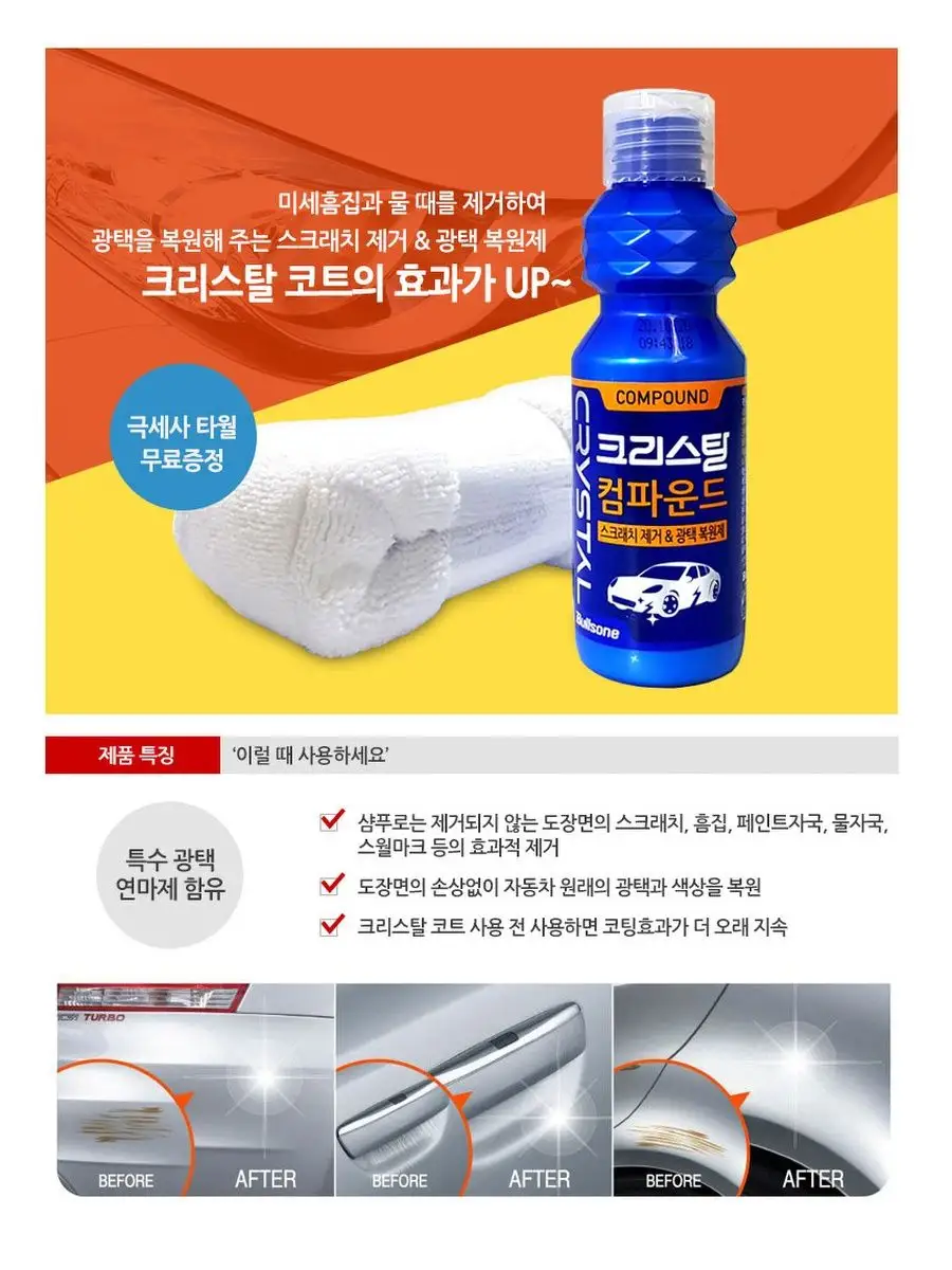 Очиститель для кузова автомобиля Bullsone "Crystal Compound" 150мл +полотенце (микрофибра)