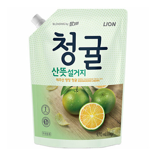 CJ Lion Chamgreen Средство для мытья посуды, овощей и фруктов (зелёный цитрус) 970мл