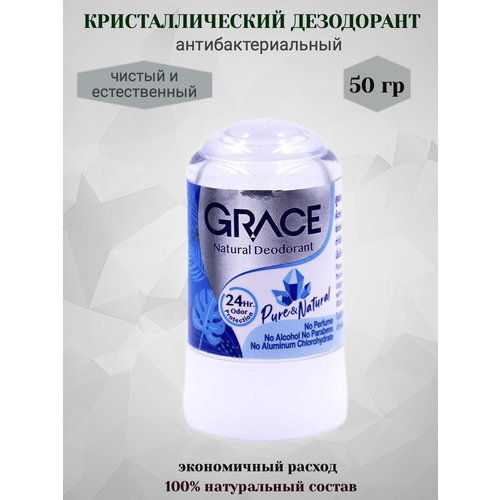 Grace Crystal Deodorant — это дезодорант на основе натурального кристалла. Он эффективно справляется с запахом пота, нейтрализует микробы и бактерии, сужает поры и очищает кожу.Дезодорант на 97% состоит из природных минералов, имеющих вулканическое происхождение. Они угнетают секрецию потовых желез, убивают патогенные микроорганизмы, абсорбируют излишки жира и влаги.Преимущества использования-Эффективность. В отличие от обычных дезодорантов, Grace Crystal Deodorant не маскирует запах пота, а устраняет его причину. Он подавляет патогенную микрофлору, сужает выводные протоки потовых желез, поглощает лишнюю влагу, угнетает деятельность микробов и болезнетворных бактерий.-Экономичность. Дезодорант имеет твёрдую текстуру, поэтому его расход почти незаметен. При рациональном использовании, одного кристалла может хватить на 1-2 года.- Натуральность. Дезодорант не содержит никаких искусственных примесей.