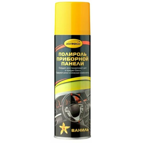 Регулярная полировка способна не только сохранить первоначальный вид пластика надолго, но и защитить от факторов, влияющих на его старение, таких, как перепады температур и ультрафиолетовое излучение. Полироль приборной панели ASTROhim эффективно очищает и полирует элементы интерьера автомобиля из пластика, винила, резины и кожзаменителя. Придает мягкий шелковистый блеск. Образует на поверхности тонкую полимерную пленку, которая защищает от разрушительного действия ультрафиолетового излучения, предотвращает выгорание и растрескивание пластика. Восстанавливает цвет пластиковой отделки. Предотвращает притягивание пыли к приборной панели, так как содержит антистатические компоненты. Не оставляет жирной и липкой пленки. Обладает приятным ароматом. Не содержит спирт, поэтому безопасен для всех видов пластика.