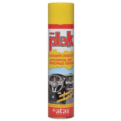 Полироль Plak предназначен для панели приборов, содержит освежитель воздуха продленного действия. Возвращает первоначальный блеск всем пластмассовым, виниловым и резиновым элементам отделки салона автомобиля, создавая на поверхности стойкий антистатический слой, отталкивающий пыль и грязь.