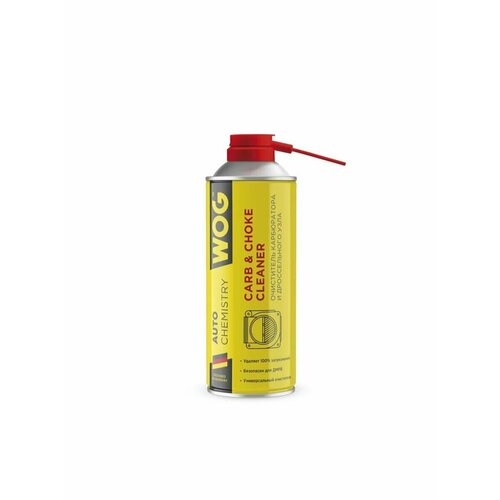Очиститель карбюратора и дроссельной заслонки WOG, 520 мл. Очиститель карбюратора и дроссельной заслонки WOG 520 мл. Быстро и эффективно очищает камеры карбюратора, жиклеры, дроссельную заслонку, клапан вентиляции картерных газовот всех видов смолистых и углеродистых отложений. Облегчает запуск двигателя, стабилизирует обороты холостого хода, снижает расход топлива, уменьшает токсичность выхлопа. Отлично подходит для высокоэффективной очисткилюбых металлических деталей, узлов и агрегатов. Способ применения: Использовать при температуре не ниже +5С. Очистку проводить на разогретом работающем двигателе. Демонтируйте корпус воздушного фильтра и извлеките фильтр. Распыляйте средство кратковременными нажатиями (3-7 секунд) на очищаемые поверхности карбюратора или заслонки до полной их очистки. При необходимости приоткрывайте дроссельную заслонку и повышайте обороты двигателя вручную, не допускайте остановку двигателя. После очистки отрегулируйте обороты холостого хода.