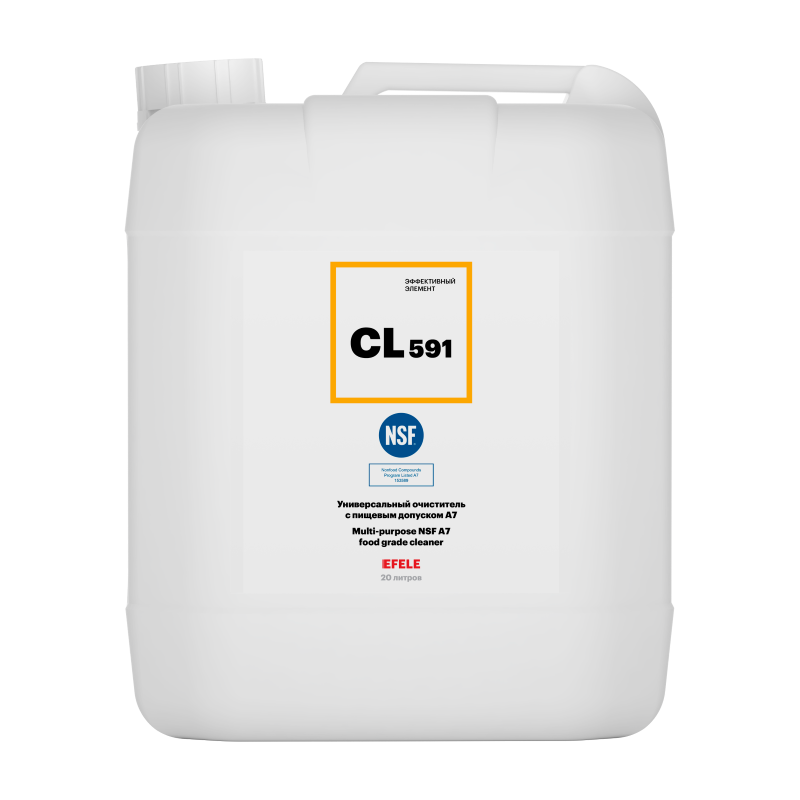 Очиститель EFELE СL-591 представляет собой биологически разлагаемое универсальное средство, которое имеет пищевой допуск NSF A7. Он имеет слабый запах, на поверхности испаряется быстро и без остатка.