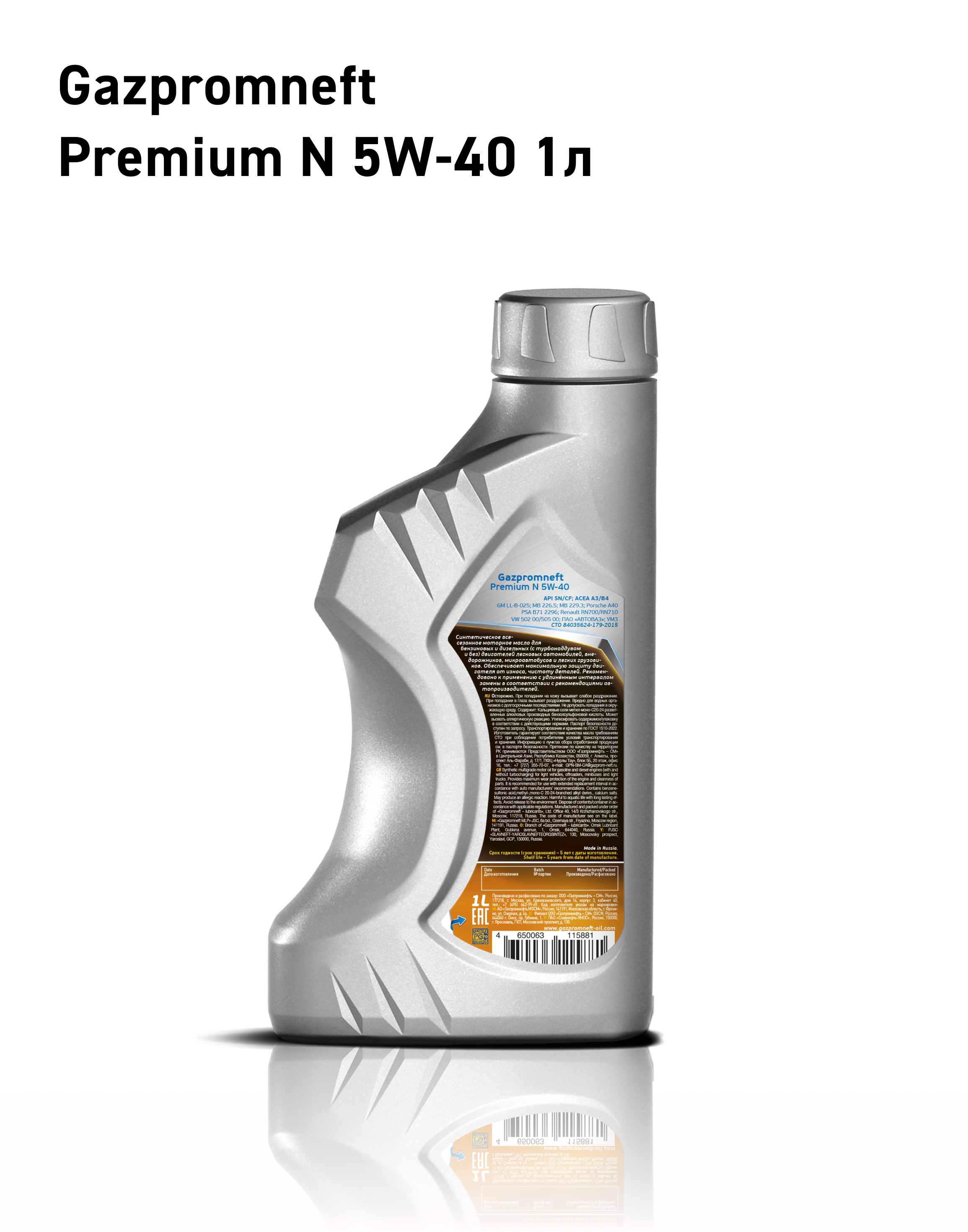 Моторное масло Gazpromneft Premium N 5W40 1л GAZPROMNEFT